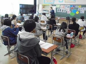 今日の5時間目、6年生が社会科の時間に租税教室を行いました。