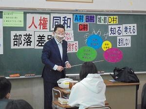人権週間の取組の一つとして、6年生が「人権教育講演会」にて同和問題について学びました。