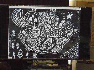 下地の上に、自分がデザインして切り取ったものを印刷していく作業に取り組んでいました。