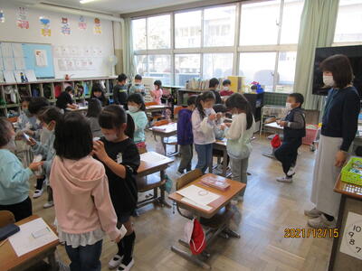 全体で集まることをせずに、学校長が各教室に出向いて、1年生から3年生までの男女各1位~3位の成績を収めた児童(18名)に表彰状を手渡しました。