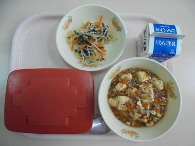 今日の給食の献立は、【ごはん・牛乳・マーボー豆腐・ナムル】でした。