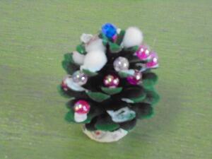 松ぼっくりを使ったミニツリーです。どのクリスマスツリーも可愛らしく素敵なものでした。
