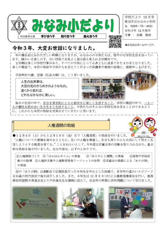 明日より、「人権週間」が始まります。本校の取組については、ホームページや学校だよりで紹介したいと思います。