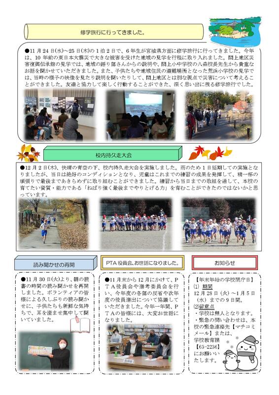 学校も2学期の仕上げに取り組んでいますが、子供たちは落ち着いて学習に取り組んでいます。