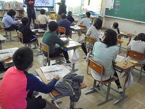 3年生教室では、アルファベットについての学習を楽しく進めていました。