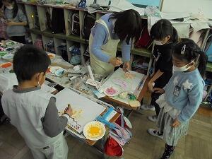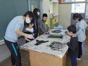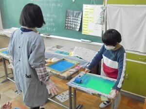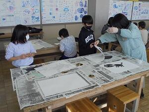 1年生はみんな楽しそうに、版画に取り組んでいます・・