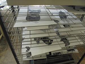 下地の上に、自分がデザインして切り取ったものを印刷していく作業に取り組んでいました。
