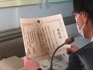 その後、交通安全に関してみなみ小学校に授与された表彰状の紹介を行いました。