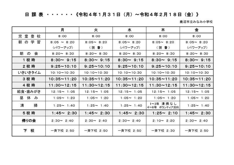 来週からまん延防止等重点措置の終了日まで、毎日5時間授業で下校させる予定です。