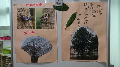 葉に字が書けるタラヨウの木の紹介とみなみ小学校に生育するオオムラサキの紹介がありました。