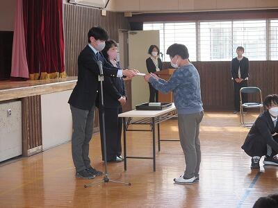 修了式は、今年度初めて、体育館に全員が集合して行いました。