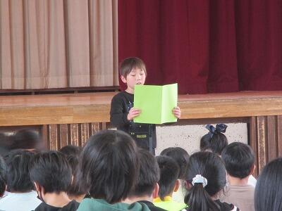 修了式では、初めに3年生児童による児童代表の発表がありました。