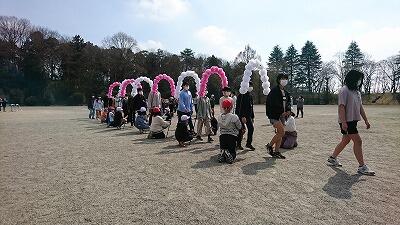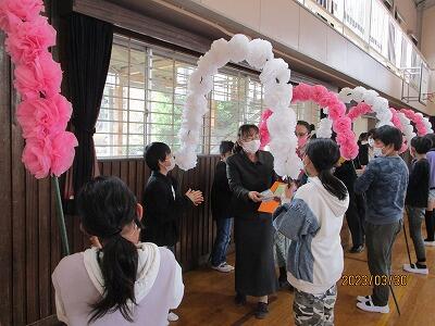 最後に児童の間を通り、花のアーチをくぐってお見送りをしました。