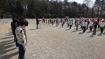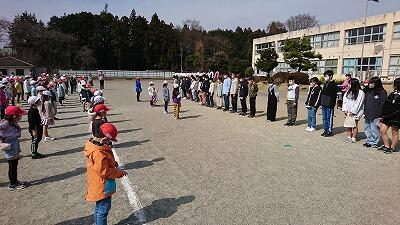 いきいきタイムに校庭で、6年生と1~4年生のお別れ式がありました。