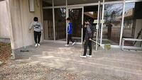 4時間目は、4年生が体育館の周りや昇降口付近の清掃を行いました。