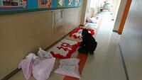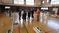 1~4年生の下校後、5時間目は、5年生と全職員で体育館内外の清掃や式場設営をおこないました。