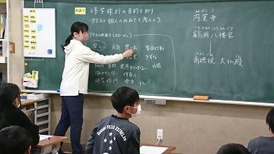 修学旅行に向け、目的を確認し、クラスと自分のめあてを考えました。