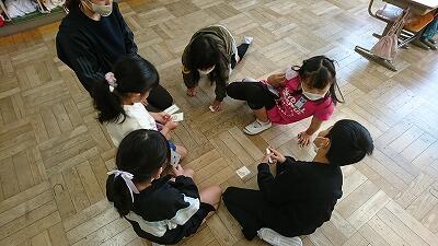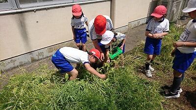 グループで協力して、小さい幼虫をたくさん見つけることができました。