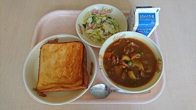 今日の献立は、メープルトースト!、ブラウンシチュー、ハムマリネサラダ、牛乳でした。