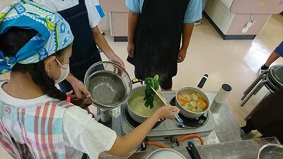 火を使って野菜を茹でるので、安全に注意しながら、調理しました。