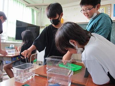 自然観察ボランティアの先生からは、アメリカザリガニという外来種が初めていなくなり本来の自然環境に戻ったことや、小さな生き物の命がそれを捕食する生き物の命を支えていることなど話してくださいました。