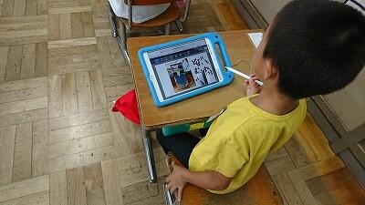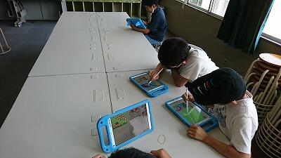 自分が作った作品をタブレットで写真にとり、そこに作品名と名前を書き込みました。