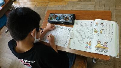 「うれしいことば」という単元で、今日は、うれしかったことばをカードに書くことをめあてに学習しました。
