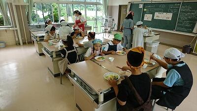 5年生の給食の様子も見ていただき、食器の正式な持ち方や姿勢など、食事のマナーなども教えていただきました。