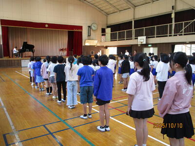 子供たちは、立腰の姿勢でしっかりと終業式に臨んでいました。