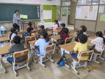 子供たちは、ボランティアさんの抑揚ある話し方に引き込まれ、お話の世界を楽しんでいました。