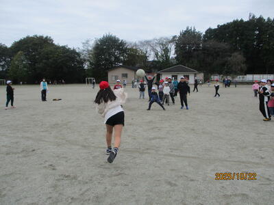 子供たちは、楽しそうにけいどろやドッジボール、へびおになどをして思いっきり校庭を走り回っていました。
