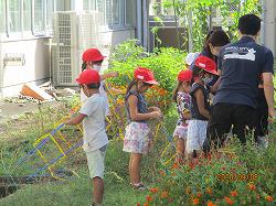 まずは、あさがおのつるを各自が取ってくるところからの活動です。