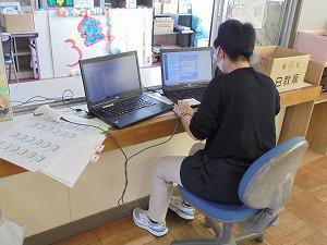 本日は、図書支援員の青木さんが来校し、図書の貸出しデータの整理をしてくださっていました。児童一人一人の読書状況を把握し,掲示の工夫をしてくださっています。