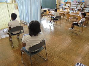 密になるのを避けるために、図書室を活用して検診を行いました。