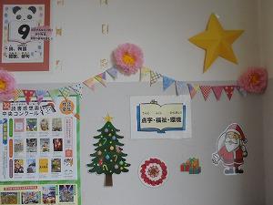 貸し出し業務や、12月らしい図書室内や廊下の掲示をしてくださっていました。