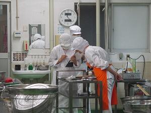 調理室で給食を作っている様子、各教室での配膳や食事の様子、給食関係の書類等について見ていただきました。