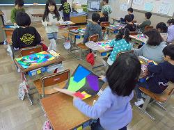 1年生の図画工作では、デザイン画とスタンプ版画の学習に取り組んでいます。
