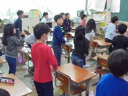 1.2年生が下校し、6時間目の各教室の様子をのぞいてみると、3年生は「書き方」の学習を、4.5年生は「木版画」の学習をしていました。