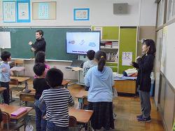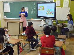 2年生の教室では、電子黒板を使いながら、リズムに乗って楽しそうに学習しています。