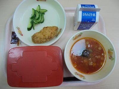今日の給食には、10種類以上の野菜が入っているそうで、学校給食ならではの、栄養バランスのとれた昼食でした。