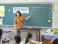 5時間目。1年生の教室では、楽しそうに音楽の勉強をしています。