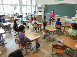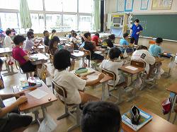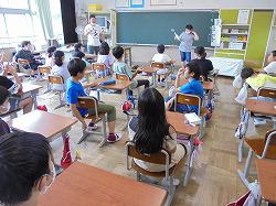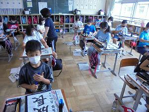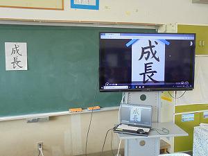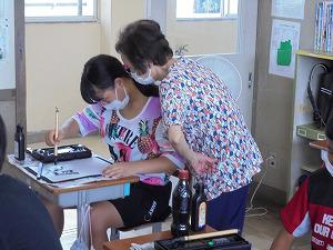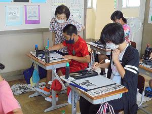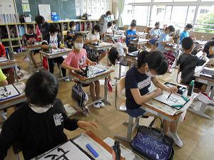 5年生教室では、書道ボランティアの廣田様を講師に迎え、習字の学習をしていました。