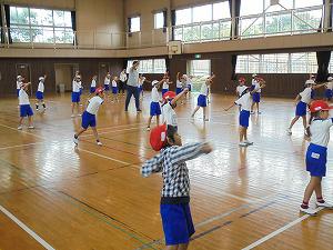 1.2年生は、合同体育です。体育館で、運動会の表現運動(ダンス)の練習をしていました。感染症対策のため、制限を設けての開催となりますが、子どもたちの精一杯の演技をお見せすることができるようにと、練習にも熱が入っていました。