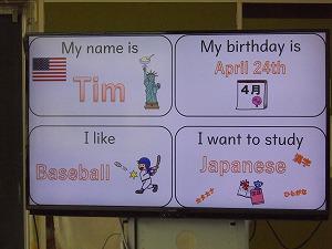 しかし、教室では「英語による自己紹介」をしようと、それぞれがワークシートに英語で記入していました。色を塗り、出来上がったものは、南校舎の2階に掲示されるとのことでした。