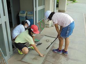 子どもたちは、まっすぐ清掃場所へ移動して、清掃を始めます。