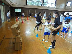 6年生がグループごとにゲームを準備して、お世話をしながらふれあうという活動でした。優しくていねいに話しかけ1年生を誘導する6年生の姿と、うれしそうで楽しそうな1年生の笑顔が印象的でした。
