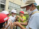 ③植物グループは、学校の敷地から外に出て、みなみ小の周りに生息する草花の観察を行いました。普段何気なく見ている草花について講師の話を真剣に聞き入っていました。