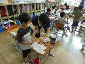 5時間目。1年教室から聞こえる嬉々とした声に誘われて教室をのぞくと、生活科の学習。
