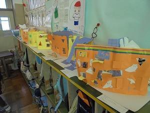 「まどのあるたてもの」を思い思いのイメージで制作していました。