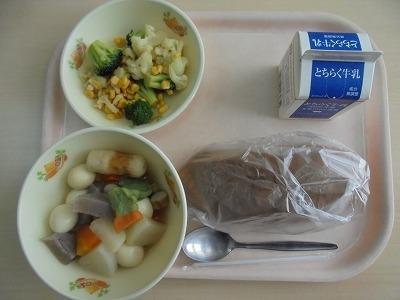 今日の給食の献立は、【揚げパン・牛乳・洋風おでん・花野菜サラダ】でした。